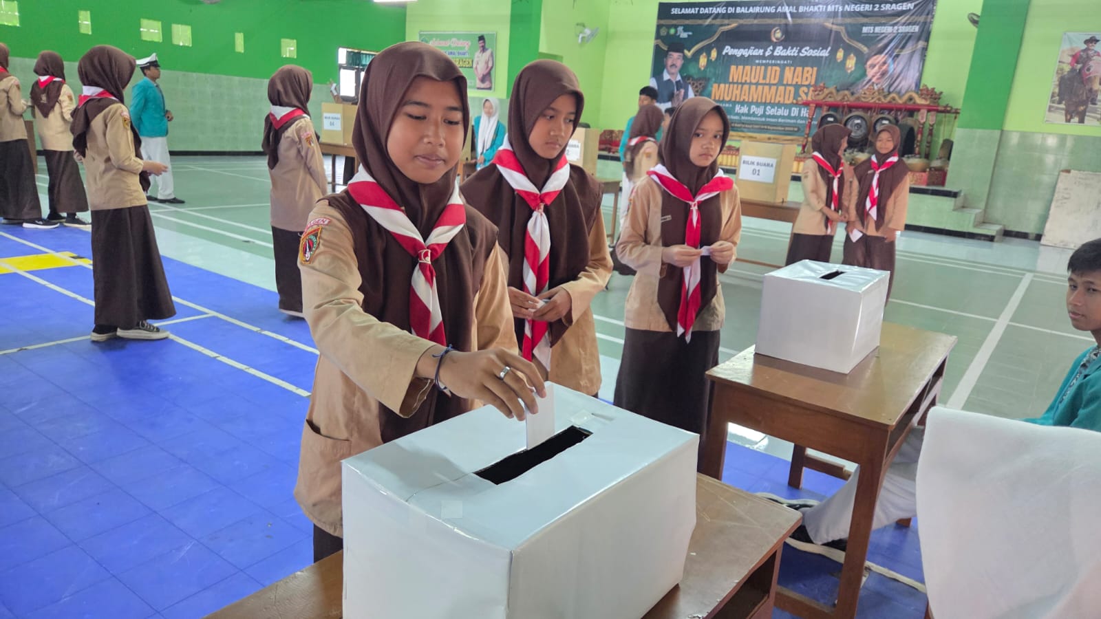 Sragen (Humas) – MTsN 2 Sragen menggelar pesta demokrasi berupa pemilihan ketua OSIM periode 2025/2026 pada Kamis (13/11). Bertempat di Balairung Amal Bhakti, pemilihan ketua OSIM diikuti oleh seluruh warga madrasah dengan tujuan memberikan wadah bagi siswa untuk berpartisipasi aktif dalam organisasi di madrasah.