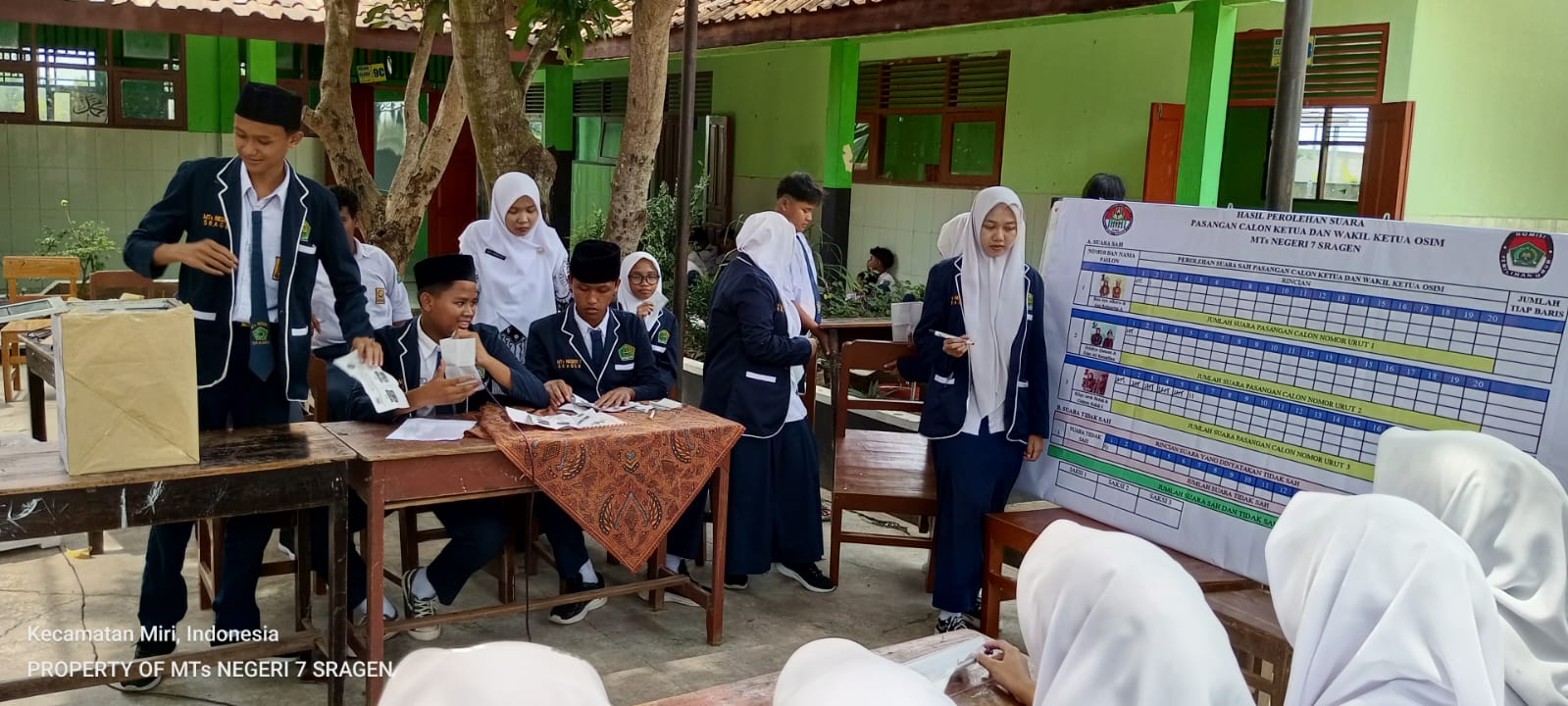 Persiapan dalam pemilihan Ketua OSIM ini sudah berjalan selama 1 bulan, mulai dari tahap pejaringan siswa, seleksi, tes wawacara, kampanye paslon, simulasi pemilu, pemungutan suara hingga ke penghitugan hasil pemilihan. Pemungutan suara dimulai pukul 09.00 setelah Ketua KPPS, Ilham Satria Djati, mengambil sumpah janji petugas KPPS. Petugas KPPS berasal dari OSIM MTsN 7 Sragen.