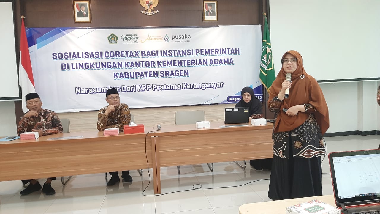 Sosialisasi ini menghadirkan dua narasumber Penyuluh Perpajakan dari KPP Pratama Karanganyar, yaitu Adinda Novelia Puspita dan Windah Ferry Cahyasari. Keduanya memberikan penjelasan mendalam terkait fitur-fitur Coretax, mekanisme pelaporan, hingga simulasi teknis penggunaannya dalam tugas sehari-hari para bendahara pemerintah. Melalui kegiatan ini, diharapkan para peserta dapat mengaplikasikan pengetahuan yang diperoleh guna mendukung kelancaran pelaksanaan tugas dan meningkatkan kepatuhan perpajakan sesuai dengan regulasi yang berlaku. Sosialisasi ini menjadi bagian dari upaya berkelanjutan Kankemenag Sragen dalam meningkatkan profesionalisme aparatur pengelola keuangan di era digital. (ren/irw)