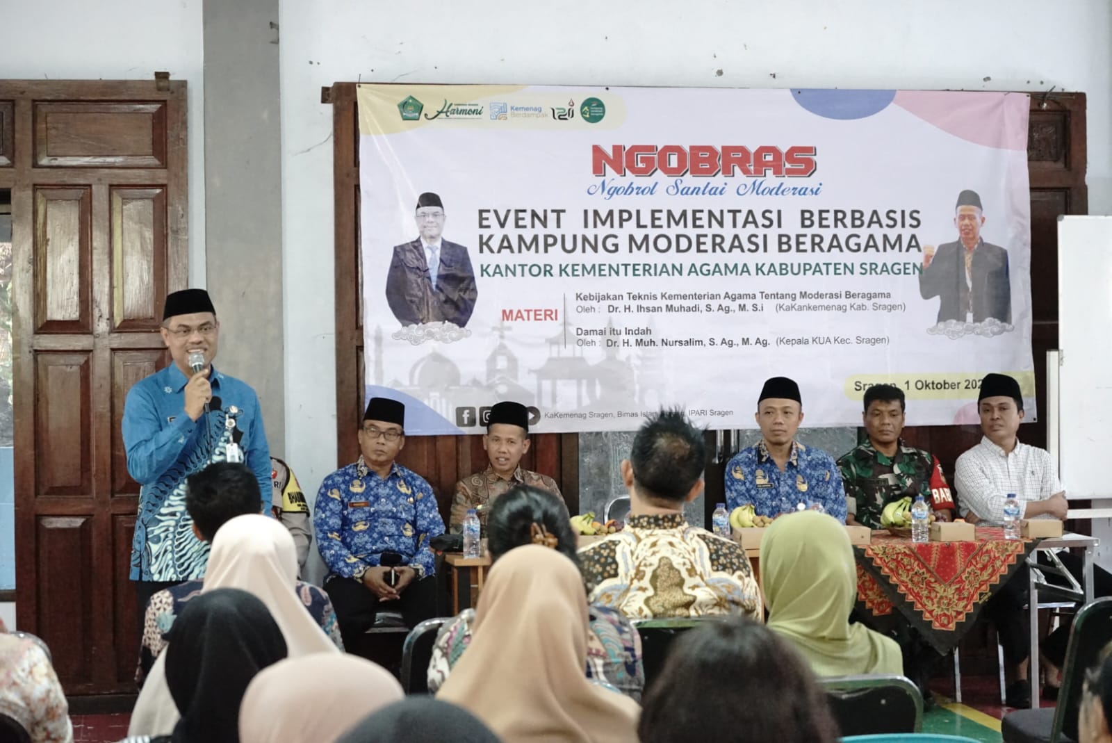 Sragen (Humas) – Kantor Kementerian Agama Kabupaten Sragen melalui Ikatan Penyuluh Agama Republik Indonesia (IPARI) Kabupaten Sragen menggelar acara NGOBRAS (Ngobrol Santai Moderasi) sebagai bagian dari implementasi berbasis Kampung Moderasi Beragama (KMB). Kegiatan ini dilaksanakan di KMB Mojosari, Kelurahan Sragen Kulon, Kecamatan Sragen, pada Rabu (01/10/2025).