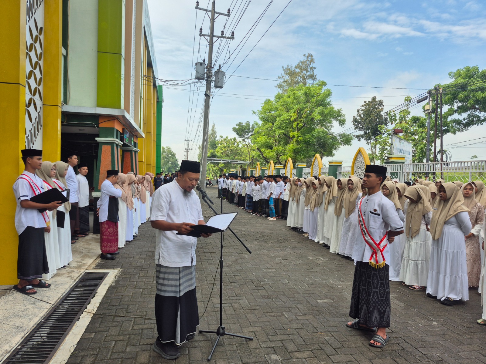 Peringatan dimulai dengan upacara bendera yang digelar di halaman madrasah. Para peserta hadir mengenakan busana khas santri. Pembina upacara, Tutut Aribowo dalam amanatnya menekankan pentingnya peran santri dalam menjaga keutuhan NKRI dan berkontribusi dalam membangun peradaban global yang berlandaskan nilai-nilai Islam.