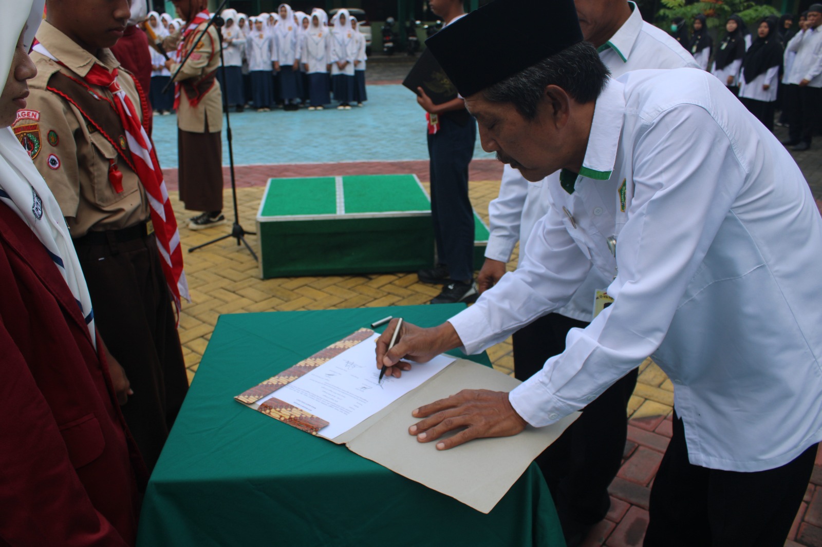 “Pengurus OSIS dan Dewan Penggalang harus mampu menjadi teladan bagi siswa lainnya, baik dalam sikap, kedisiplinan, maupun semangat berprestasi. Amanah yang diberikan ini hendaknya dilaksanakan dengan penuh tanggung jawab dan keikhlasan,” tegas Amiruddin. Ia juga berharap kepengurusan yang baru dapat bersinergi dengan seluruh warga madrasah dalam menciptakan lingkungan belajar yang kondusif, aktif, dan berkarakter, sejalan dengan nilai-nilai moderasi beragama yang dikembangkan di madrasah.
