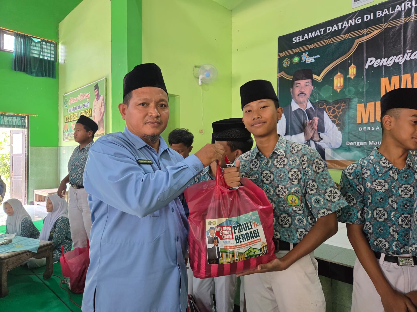 Kepala MTs Negeri 2 Sragen, Aris Suparlan, menyampaikan bahwa kegiatan bakti sosial ini menjadi salah satu cara meneladani akhlak Rasulullah SAW, yang selalu menebarkan kasih sayang dan kepedulian terhadap sesama. Dalam sambutannya, ia menekankan pentingnya kejujuran, semangat belajar, serta doa untuk orang tua.