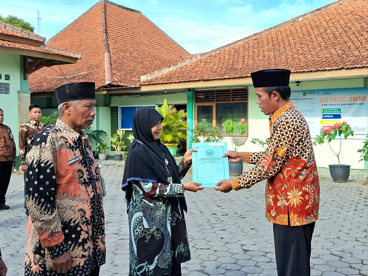 Sragen (Humas) – Apel pagi Aparatur Sipil Negara (ASN) Kementerian Agama Kabupaten Sragen pada Kamis (30/10) diwarnai momen haru dengan penyerahan Surat Keputusan Pensiun kepada tiga ASN yang telah menyelesaikan masa pengabdiannya. Mereka adalah Sumini (MTsN 1 Sragen), Daryanto (MTsN 8 Sragen), dan Basir (KUA Sukodono).