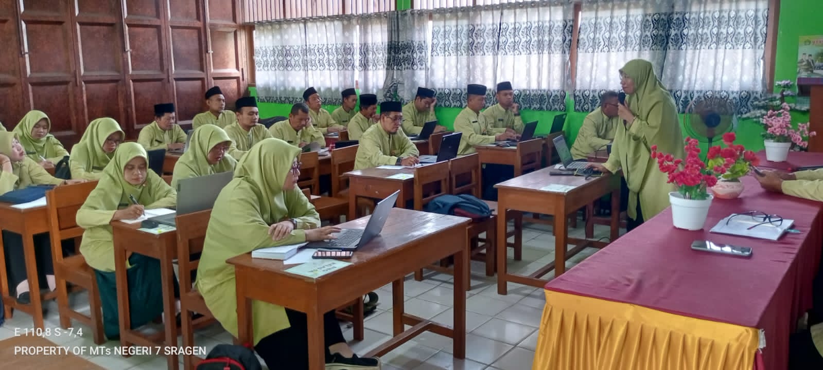 “Saya berharap guru MTs Negeri 7 Sragen dapat meningkatkan kompetensi, terutama dalam menerapkan pembelajaran mendalam dan kurikulum berbasis cinta. KBC itu mempunyai pancacinta meliputi: Cinta Allah/Rasul, ilmu, lingkungan, diri dan sesama, serta Tanah Air. Mari kita terapkan 5 pilar nilai utama ini di madrasah,” ujarnya.