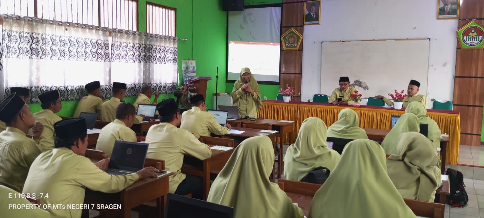 Diseminasi ini menghadirkan narasumber dari internal guru MTsN 7 Sragen yaitu Anik Sunarsih (Waka Kurikulum), Ngadi (Guru Bahasa Arab), dan Ita Yusnita (Guru Qur’an Hadits) yang sebelumnya mengikuti diklat penguatan kurikulum dan PJJ KBC.