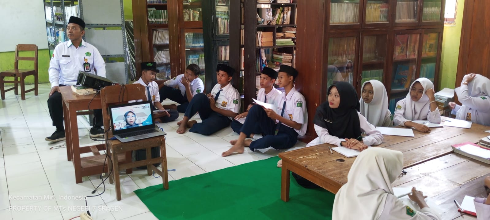 Sragen (Humas) – Siswa-siswi MTsN 7 Sragen didampingi guru BK mengikuti kegiatan Orientasi Pertolongan Pertama Pada Luka Psikologis (P3LP) pada 29-30 September 2025. Kegiatan yang diinisiasi oleh Kementerian Kesehatan ini dilaksanakan secara daring melalui Zoom Meeting di perpustakaan.