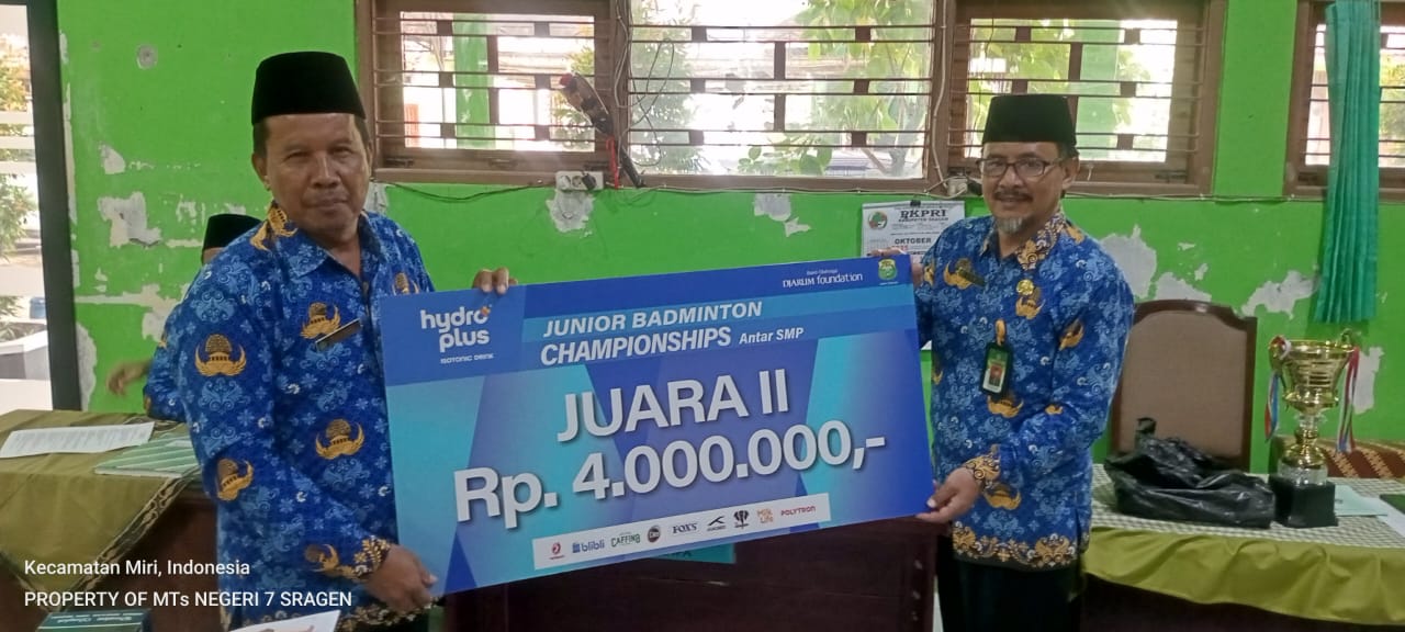“Alhamdulillah MTsN 7 Sragen meraih Juara Dua pada Hydroplus Junior Badminton Championship 2025. Hal ini prestasi yang membanggakan di tingkat Nasional. Terima kasih guru pendamping, siswa binaannya meraih kesuksesan. Semoga prestasi ini memacu semangat siswa yang lain,” ujarnya.