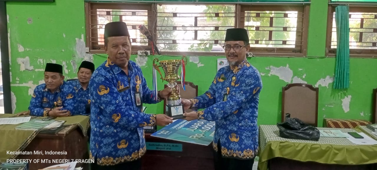 Selanjutnya serah terima piala penghargaan dan hadiah disampikan pendamping kepada Kepala Madrasah disaksikan segenap peendidik dan tenaga kependidikan MTsN 7 Sragen di ruang guru dan mendapatkan applause meriah. (ns/enn)